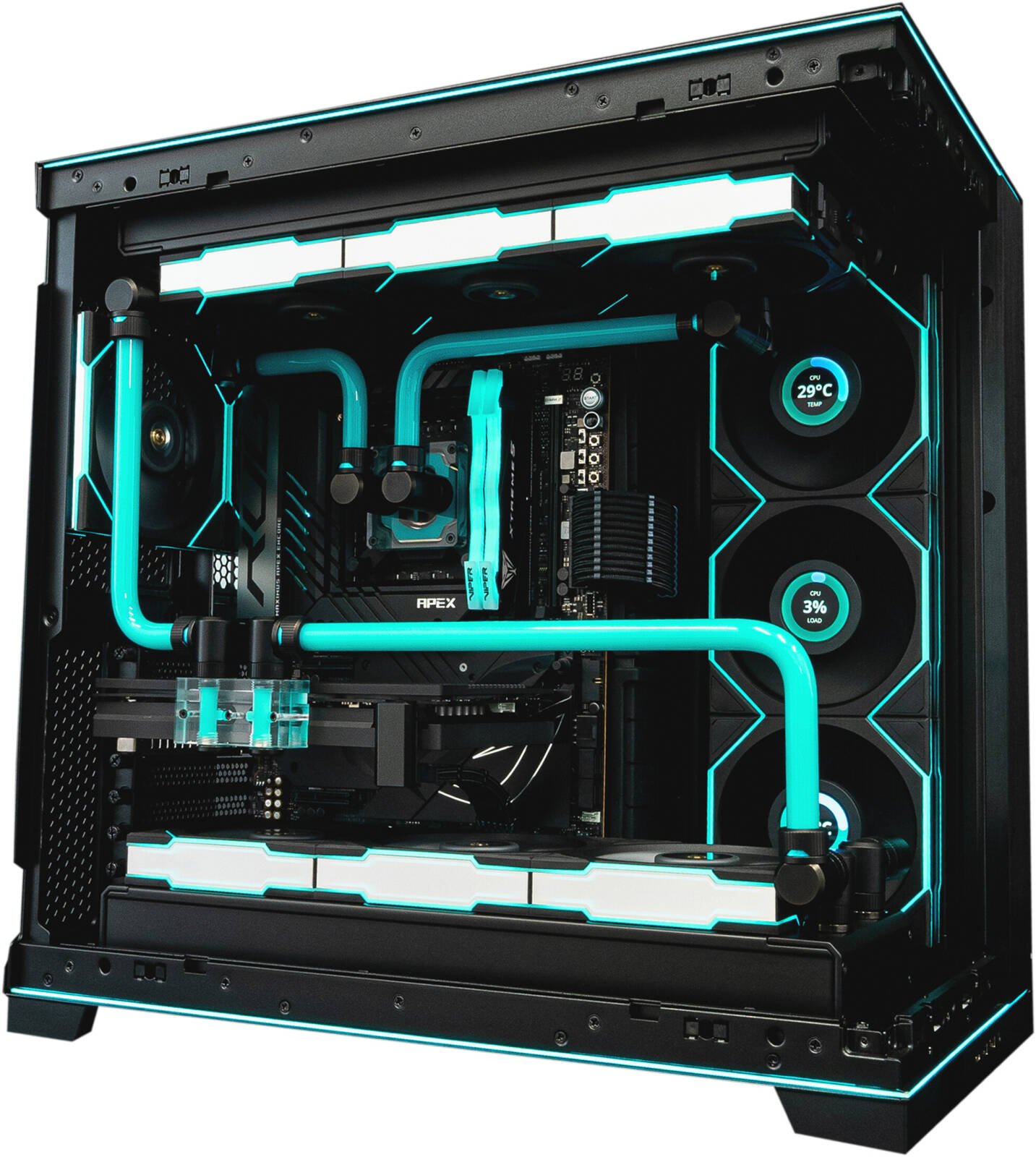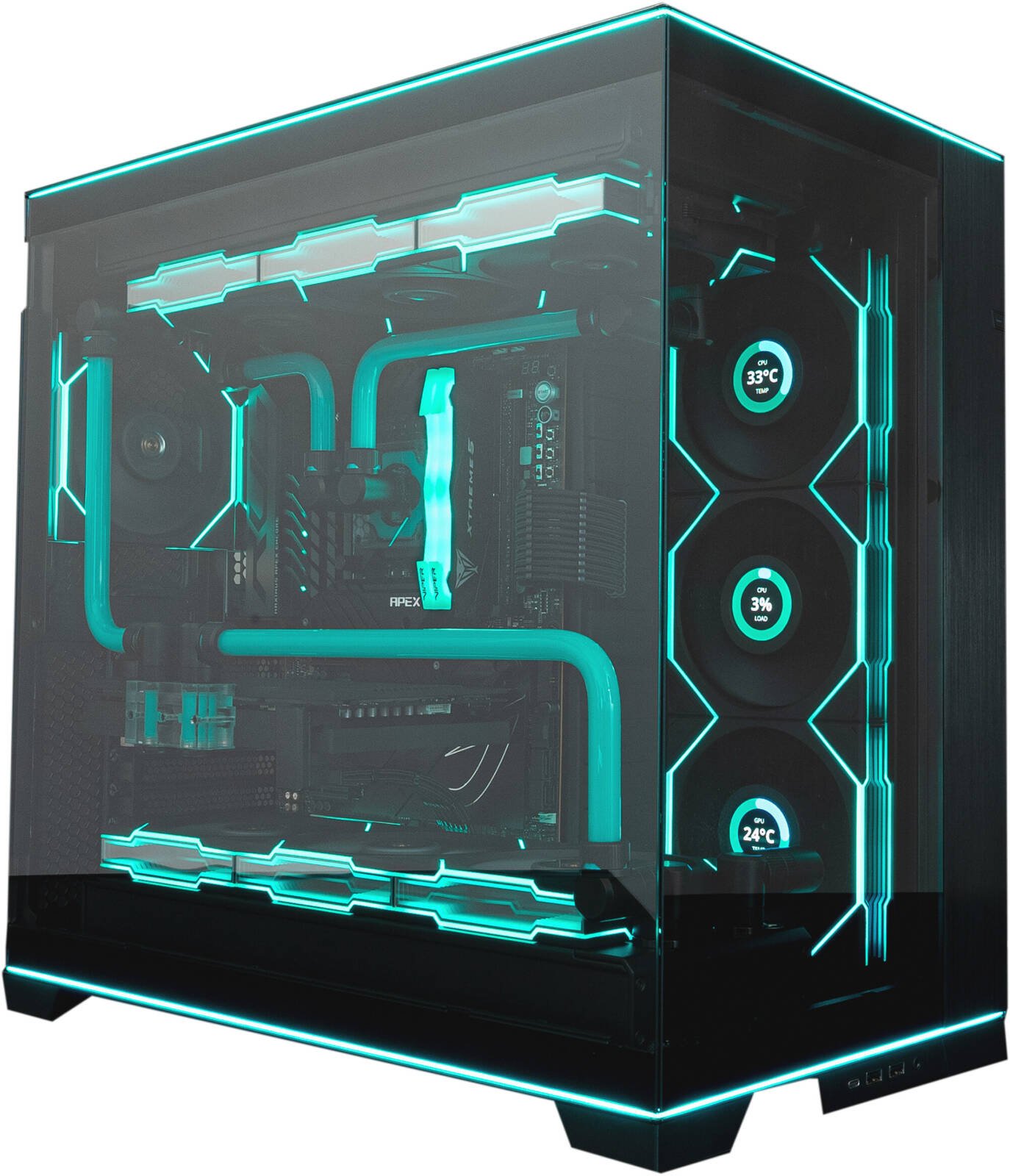 Aqua Dominion Gaming PC – AMD Ryzen 9 9950X3D (16C/32T), NVIDIA RTX 5090 32GB, 64GB DDR5 RAM 6000MHz, 4TB SSD Gen5, 1000W PSU, Water cooled System, Wi-Fi + BT