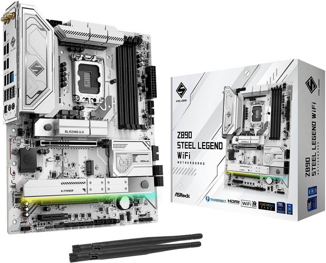 ASRock Z890 Steel Legend WiFi LGA 1851 ATX Motherboard, 4x DDR5 DIMM Slots, Up to 256GB Max Memory, PCIe 5.0 x16 Slot, 4x M.2 Sockets, WiFi & BT Connectivity