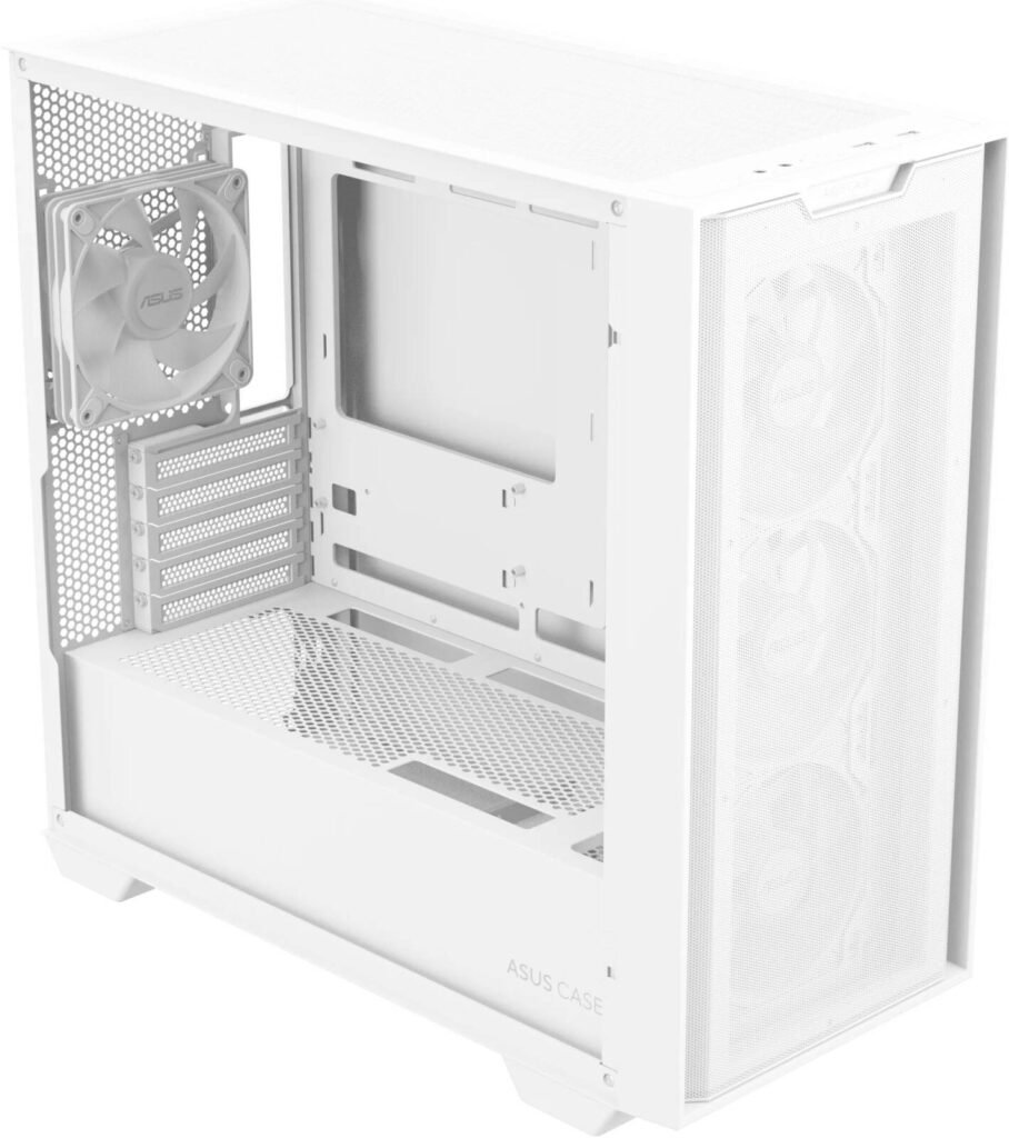 ASUS A21 Plus M-ATX Computer Case, 4x 120mm ARGB Pre-Installed Fan, Up to 360mm Radiator, & 7x Fan Support, BTF Support, Headphone, Microphone & 2x USB 3.2 Gen1 Interface, White