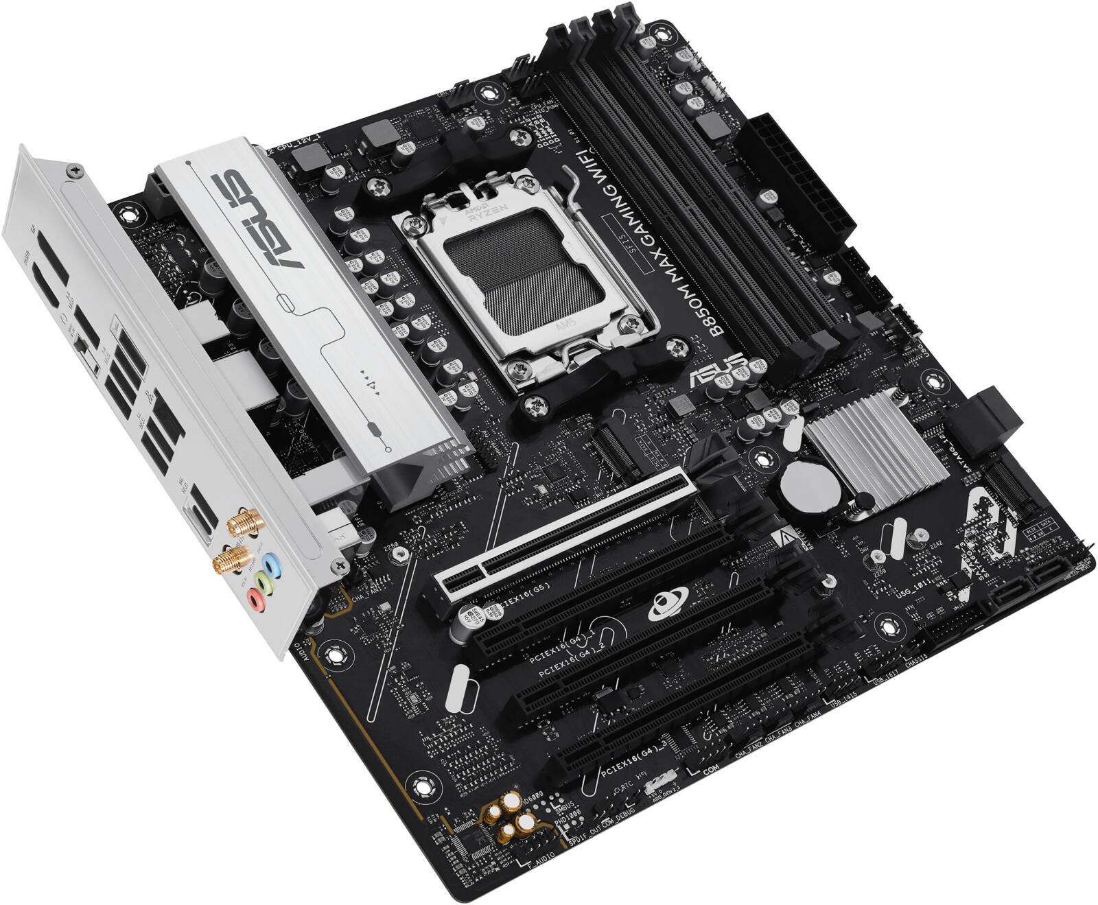 ASUS B850M MAX Gaming WiFi AM5 Micro-ATX Motherboard, AMD B850 Chipset, 4x DIMM DDR5 Slots, Up to 256GB Max Memory, 1x PCIe 5.0 x16, 3x M.2 Slots, Wi-Fi & BT 5.4