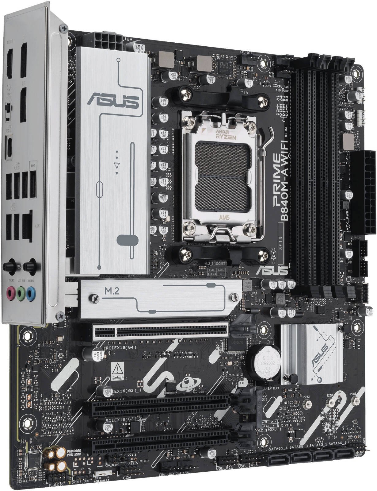 ASUS PRIME B840M-A WiFi AM5 Micro-ATX Motherboard, AMD B840 Chipset, 4x DIMM DDR5 Slot, Up to 192GB Max Memory, 1x PCIe 4.0 x16 SafeSlot Core+, 3x M.2 Slots, Wi-Fi & BT Connectivity