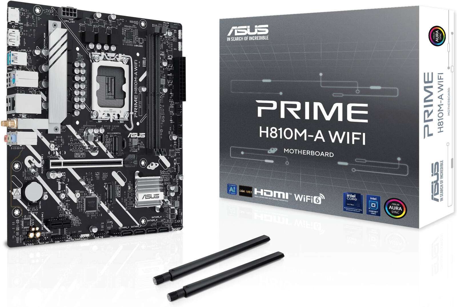 ASUS Prime H810M-A WiFi LGA 1851 Micro-ATX Motherboard, Intel H810 Chipset, 2x DIMM DDR5 Slots, Up to 128GB Max Memory, 1x PCIe 4.0 x16 Slot, 2x M.2 Slot, WiFi & BT Connectivity