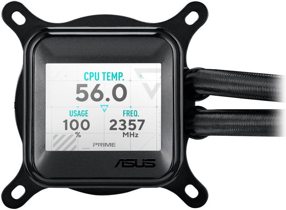 ASUS Prime LC 360 aRGB LCD CPU Liquid Cooler, 2.3″ LCD Display, 360mm Radiator, 3x PRIME LC 36025 Integrated Fan, 2500 RPM Fan Speed, 77.22 CFM Fan Airflow, Black