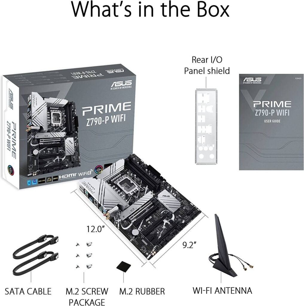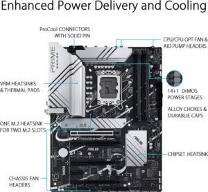 Asus Prime Z790-P WiFi ATX Motherboard, Socket Intel LGA1700, Z790 Chipset, PCIe 5.0, 128GB DDR5 Max Memory, 3x M 2 Slots, WiFi 6, Bluetooth v5.2, 2.5Gb LAN, 14+1 Power Stages
