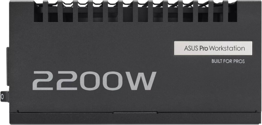ASUS Pro WS Power Supply, 2200W Power, 80 PLUS Platinum Efficiency, ATX 3.1 Compatible, Dual-Ball Fan Bearings, Gold-Plated High-Performance Copper Pins, Black
