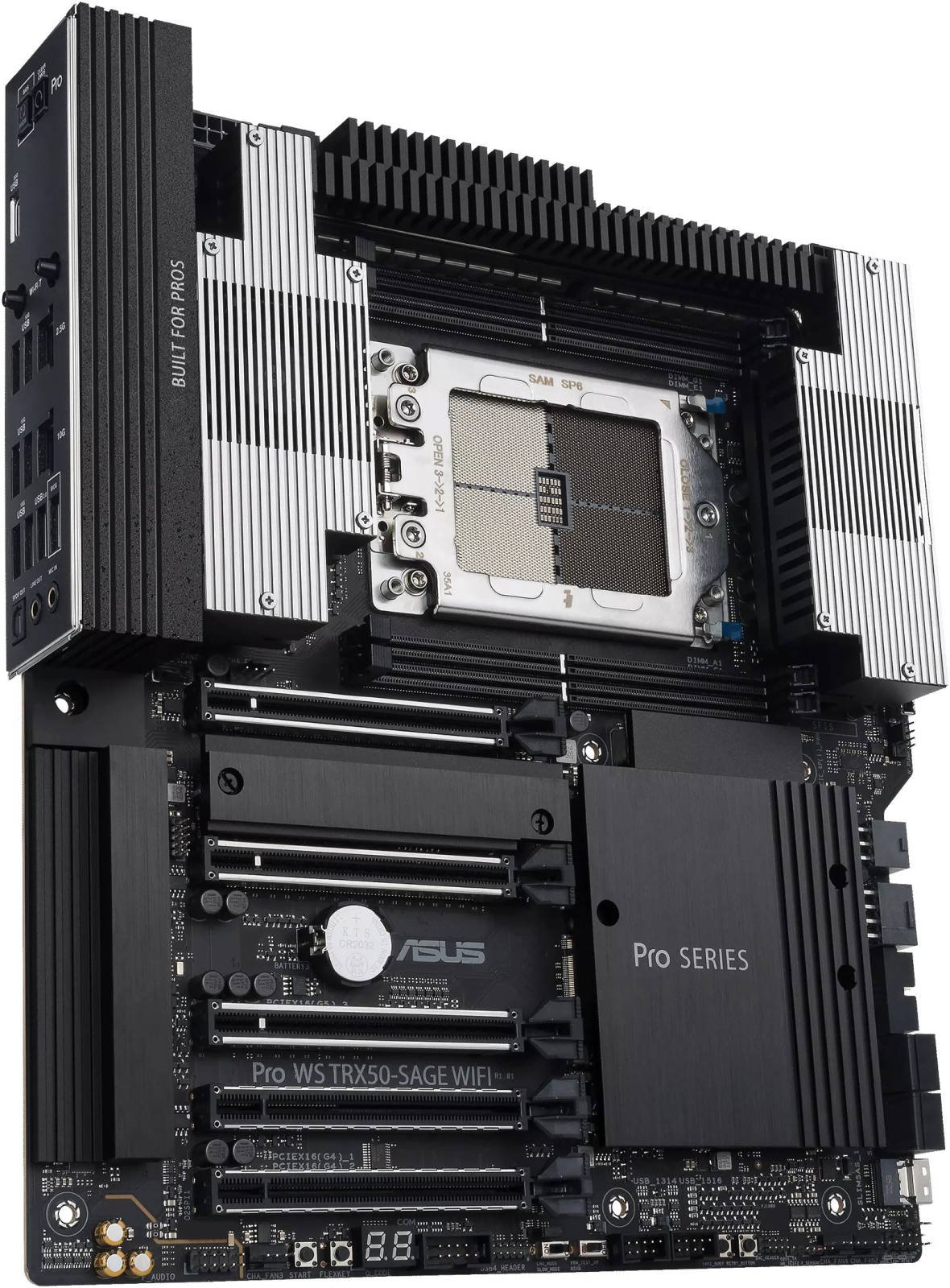 ASUS Pro WS TRX50-SAGE WIFI A Workstation Motherboard, AMD TRX50 Chipset, 4x DDR5 DIMM Slots, 3x PCIe 5.0 x16 (x16) Safeslots, 4x M.2 Slots, Black