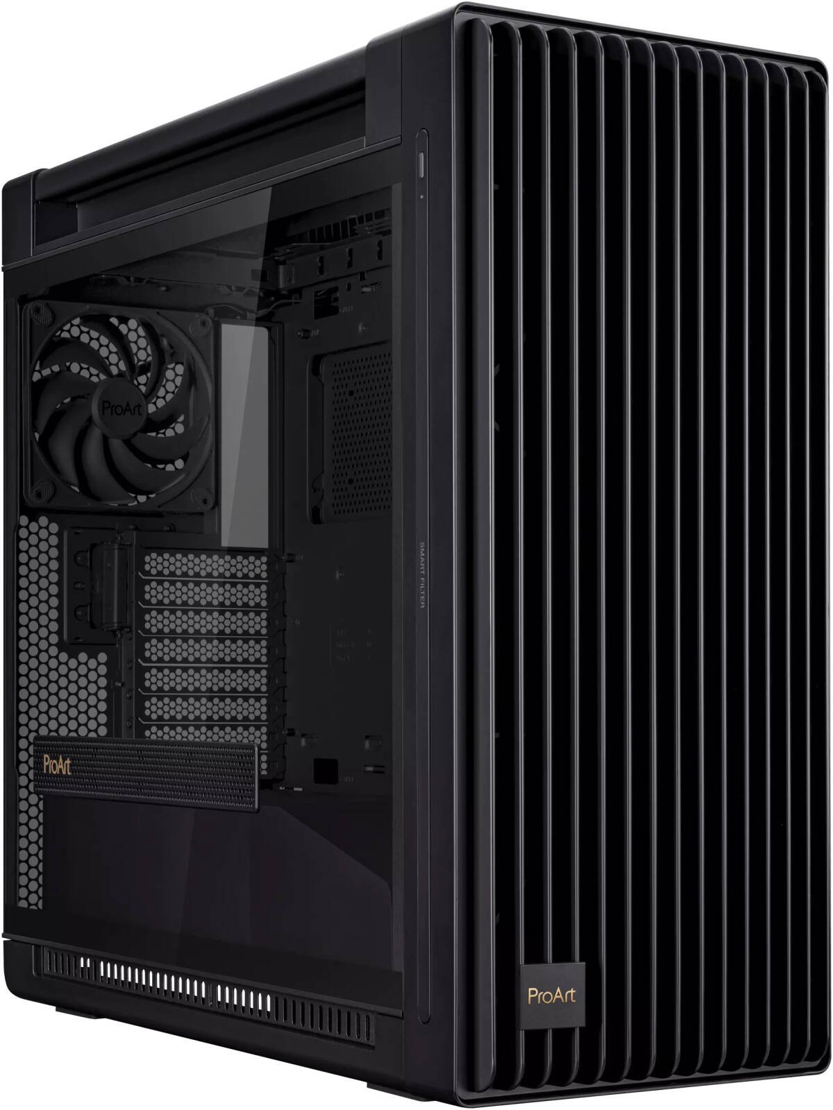 Asus ProArt PA602 Gaming E-ATX Computer Case, 2x 200mm & 1x 140mm Pre-Installed Fans, Up to 420mm Radiator & 6x Fans Support, Dual Air Deflectors, 15.5mm Open Grills, Black