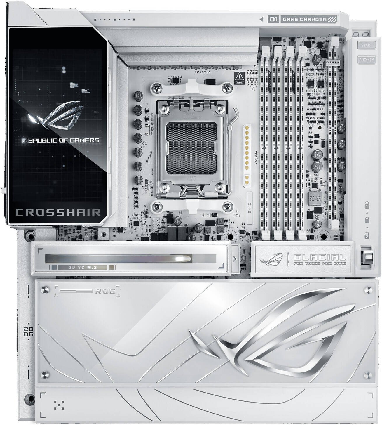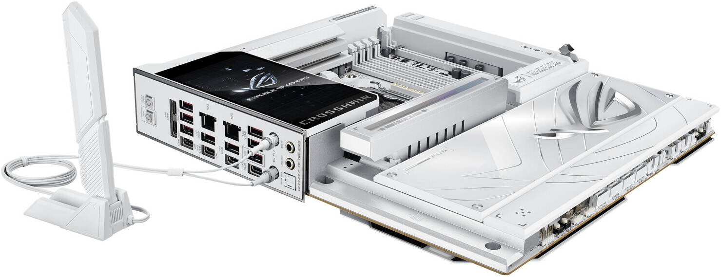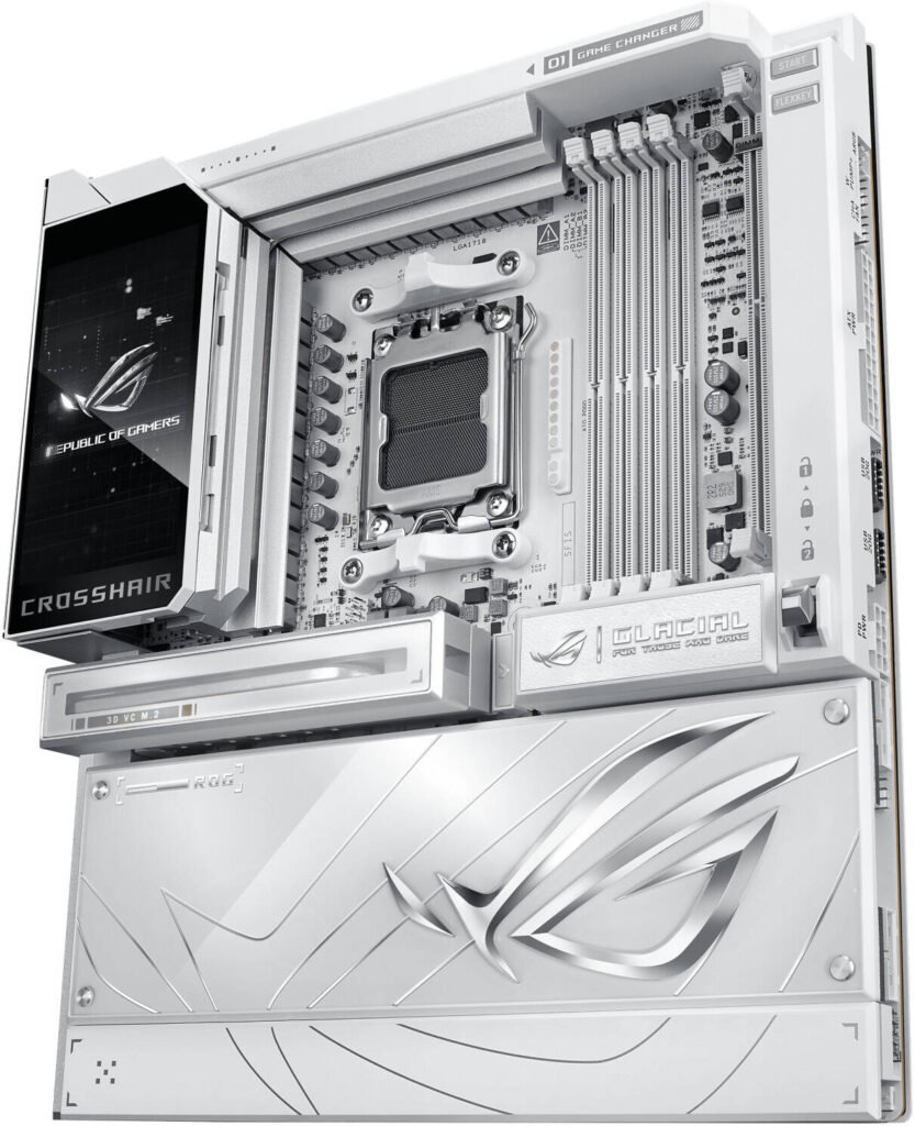 ASUS ROG Crosshair X870E Glacial E-ATX AM5 Motherboard, AMD X870E Chipset, 4x DDR5 DIMM Slots, Up to 256GB Max Memory, 2x PCIe 5.0 x16 Slots, 7x M.2 Slots, WiFi 7 & BT 5.4, White