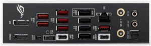 | Back Panel I/O | USB ports (as above), DisplayPort, HDMI, Wi-Fi module, 5Gb Ethernet, gold-plated audio jacks, optical S/PDIF, BIOS FlashBack™, Clear CMOS |