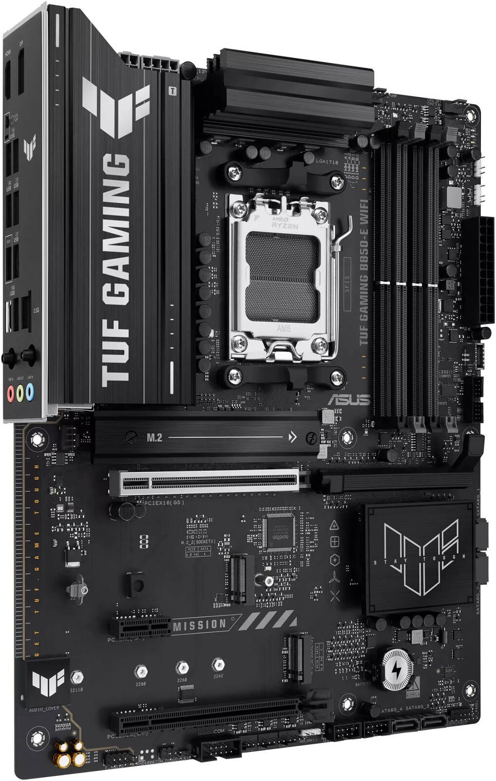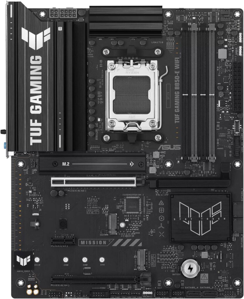 ASUS TUF GAMING B850-E WIFI AM5 ATX Motherboard, AMD B850 Chipset, 4x DIMM DDR5 Slots, 256GB Max Memory, 1x PCIe 5.0 x16 SafeSlot, 3x M.2 Slots
