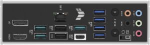 | Back Panel I/O Ports | 1 x USB 20Gbps, 3 x USB 10Gbps, 4 x USB 5Gbps, 2 x USB 2.0, 1 x DisplayPort, 1 x HDMI™, Wi-Fi module, Ethernet, 5 x Audio jacks, BIOS FlashBack™ |