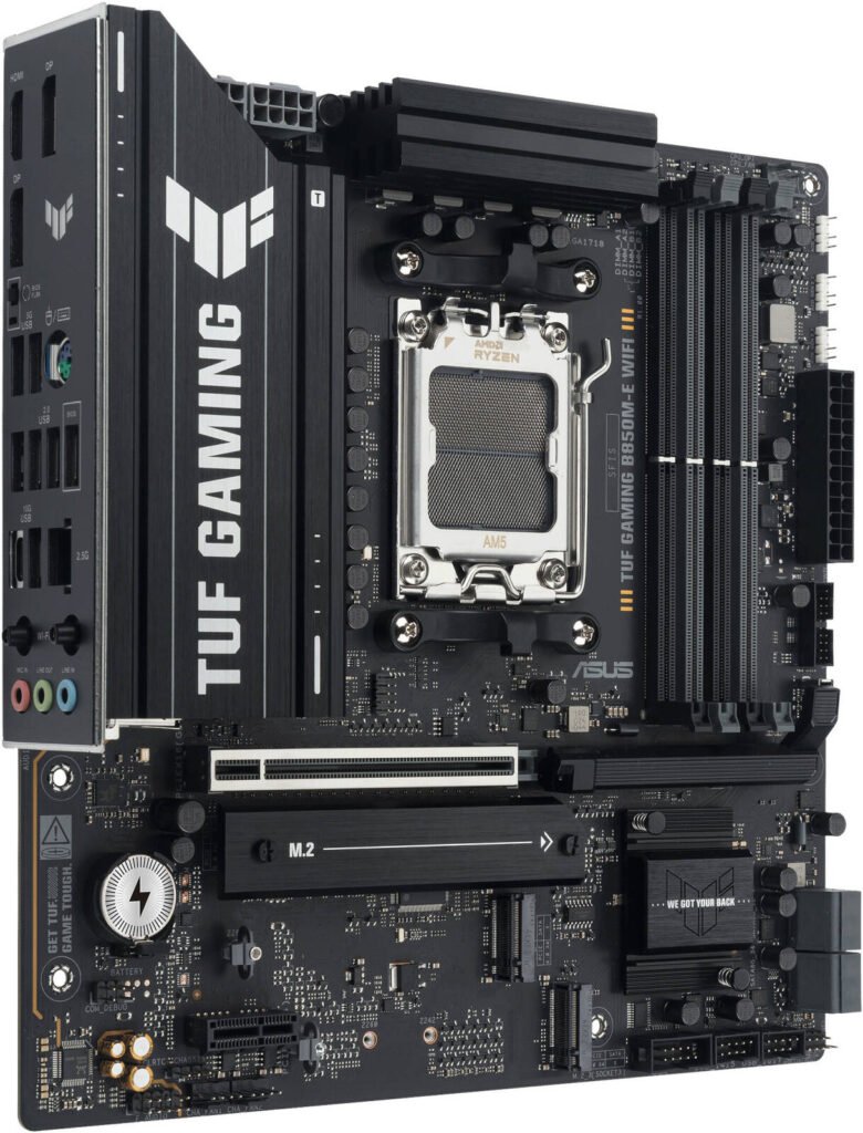 Be the first to review “ASUS TUF GAMING B850M-E WIFI AM5 Micro-ATX Motherboard, AMD B850 Chipset, 4x DDR5 DIMM Slot, Up to 256GB Max Memory, 1x PCIe 5.0 x16, 3x M.2 Slots, Wi-Fi 6E & BT 5.3”