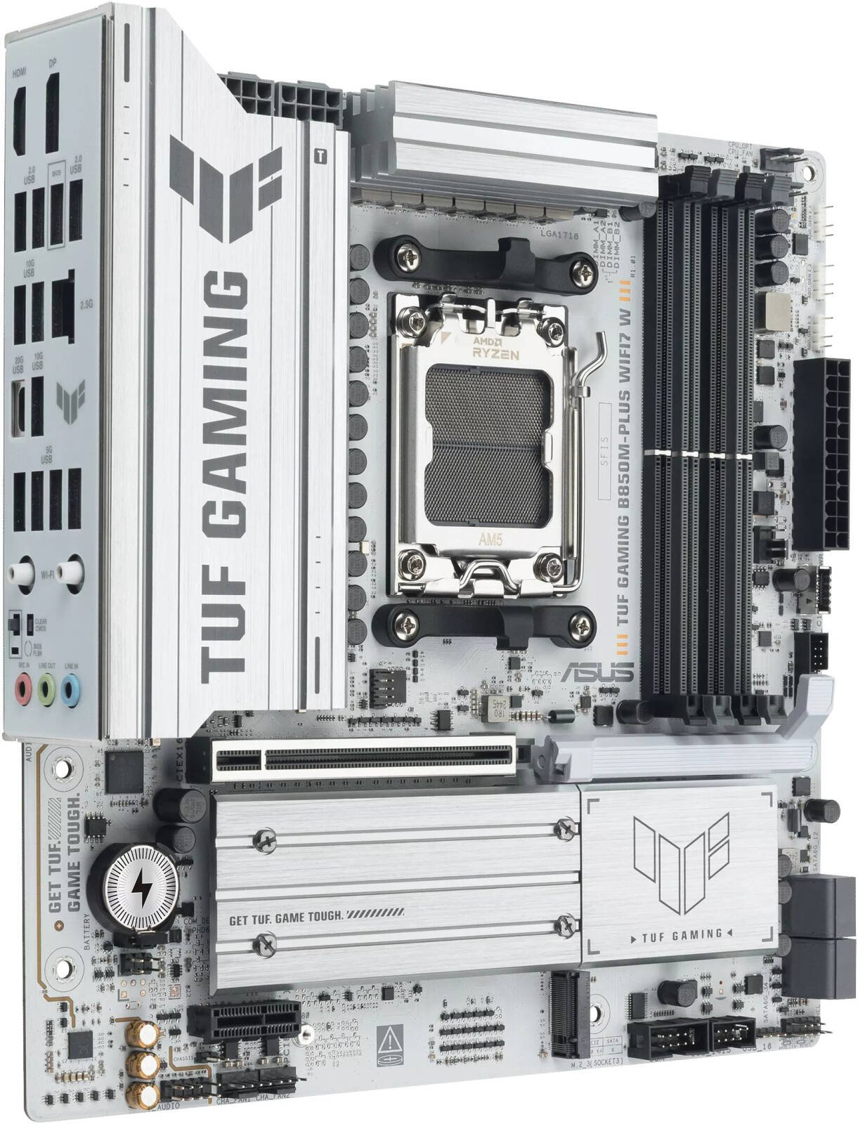 ASUS TUF GAMING B850M-PLUS WIFI7 W m-ATX AM5 Motherboard, AMD B850 Chipset, 4x DDR5 DIMM Slots, Up to 256GB Max Memory, 1x PCIe 5.0 x16 SafeSlot, 3x M.2 Slot, White