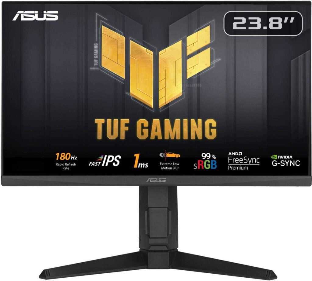 ASUS TUF Gaming VG249QL3A Monitor, 24″ IPS Display, FHD Resolution, 180Hz Refresh Rate, 1ms (GtG) Response Time, AMD FreeSync Premium & NVIDIA G-Sync Technology, Black