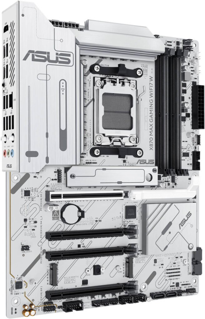 ASUS X870 MAX GAMING WIFI7 W AM5 ATX Motherboard, AMD X870 Chipset, 4x DDR5 DIMM Slots, Up to 256GB Max Memory, 1x PCIe 5.0 x16, 3x M.2 Slots, Wi-Fi 7 & Bluetooth v5.4, White