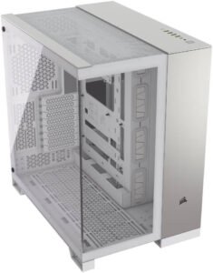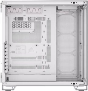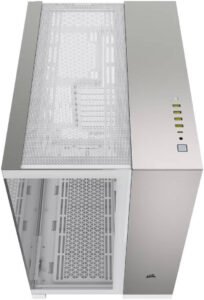 Corsair 6500X Mid-Tower Computer Case, Up to 360mm Radiator & 10x Fan Support, Tempered Glass, Dual Chamber, Modern Front Panel I/O, Wide Cooling Flexibility, White / SatinGrayAluminum