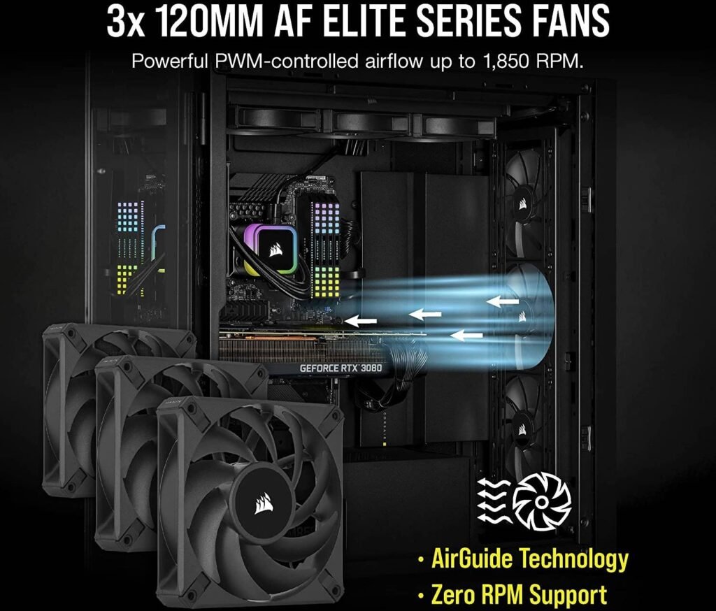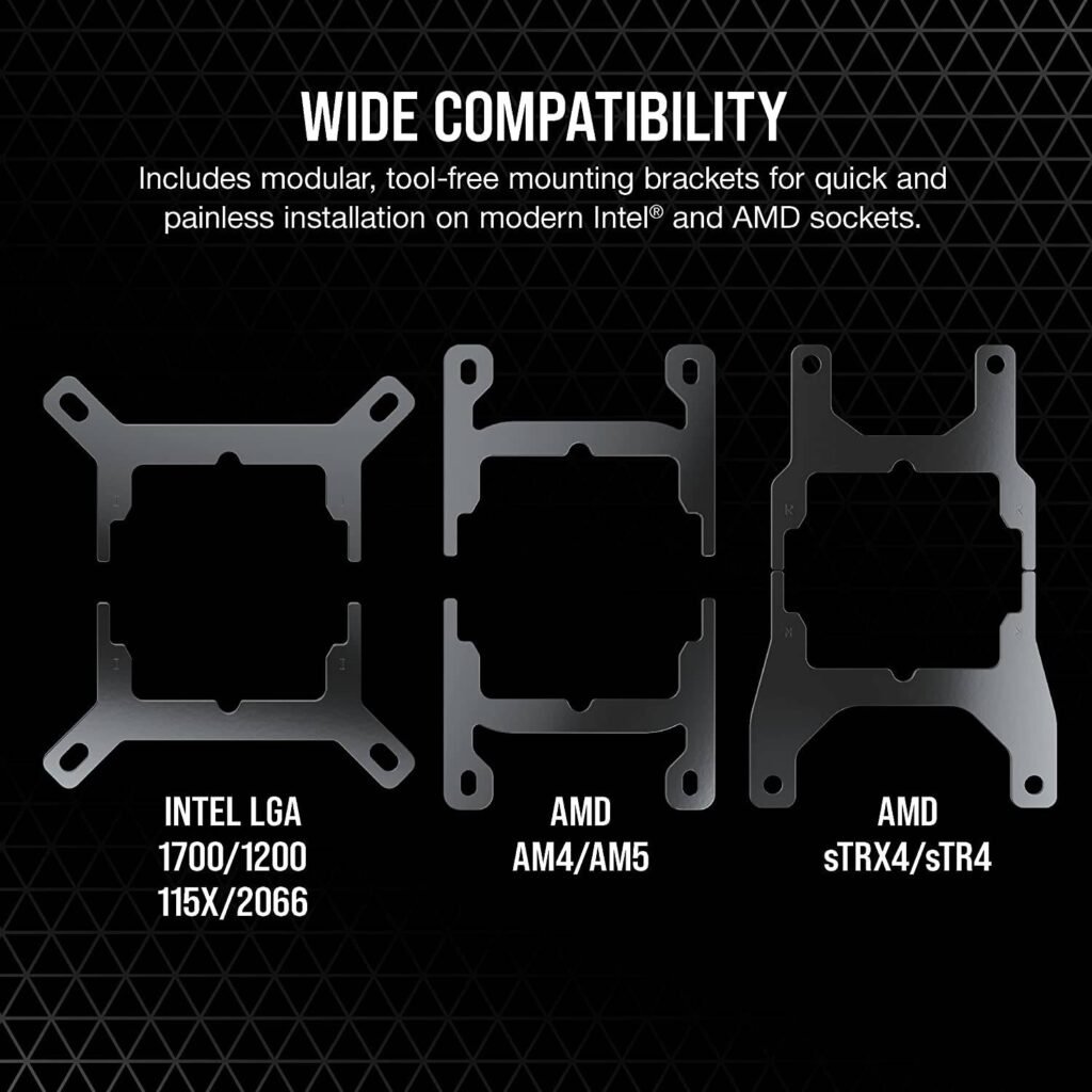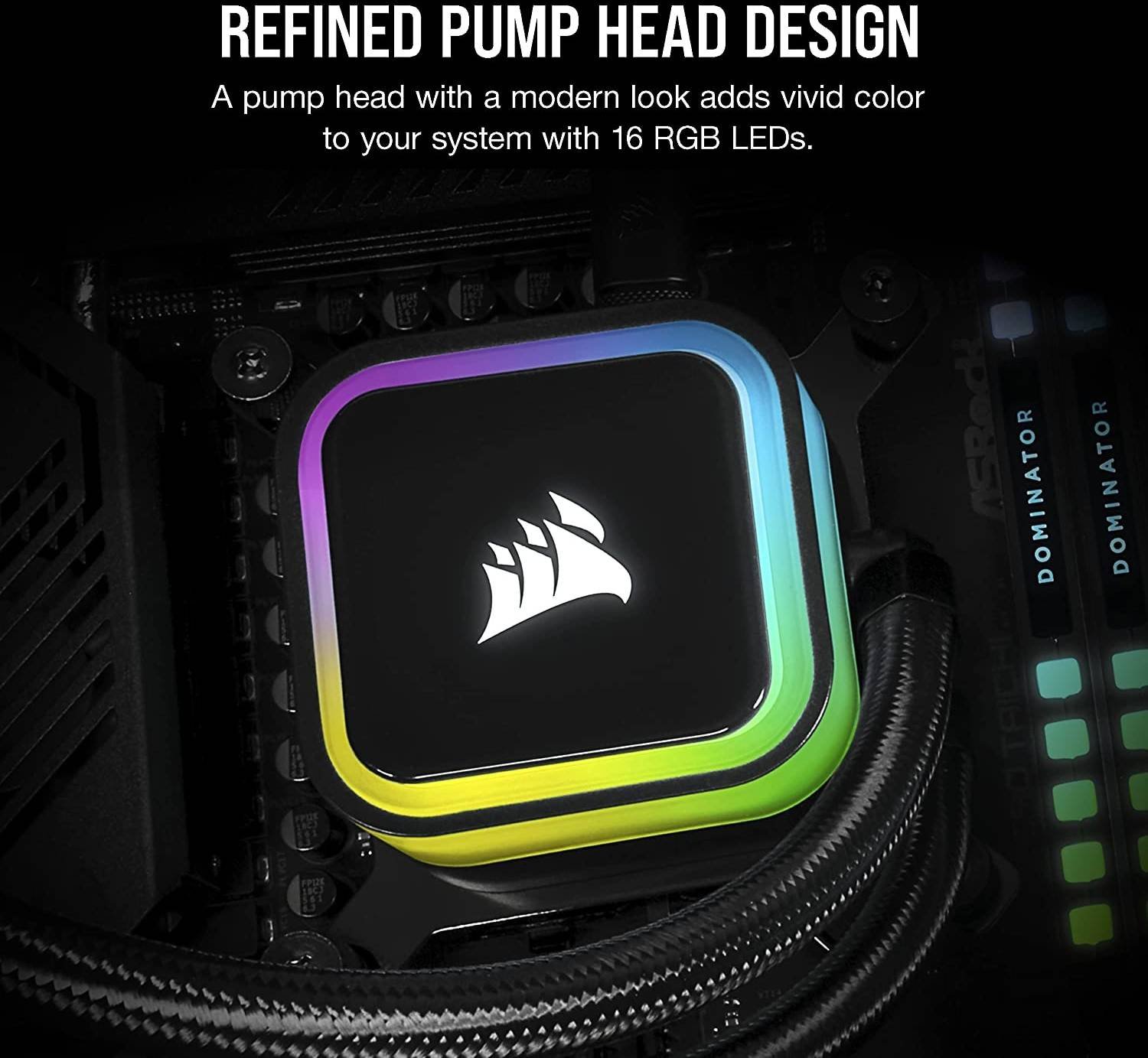 Corsair iCue H150i RGB Elite Liquid CPU Cooler, 360mm Radiator Size, 400mm Tubing Length, 400-1850 RPM Fan Speed, 10.9 – 59.1 CFM Fan Airflow, 10 – 31.5 dBa Noise Level, 3 Fans, Black