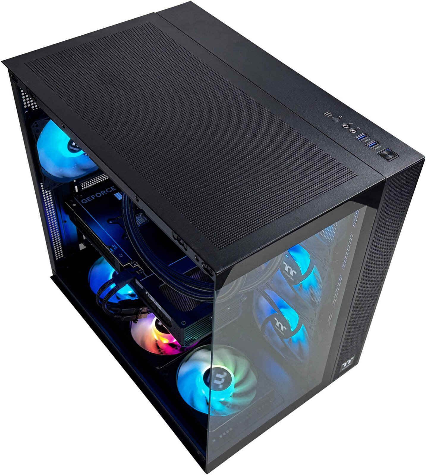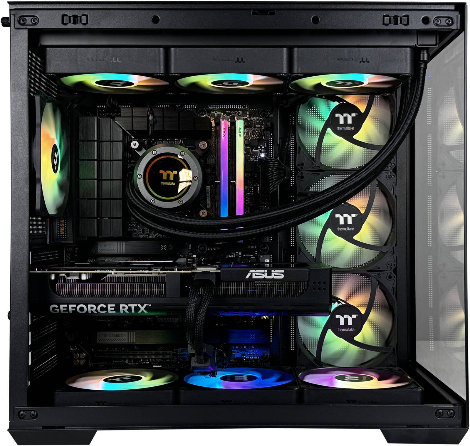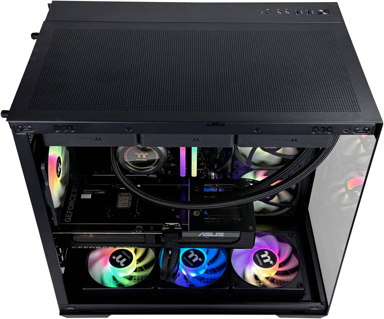 Thermaltake View 380 TG ARGB Mid Tower Computer Case, 4x 120mm ARGB Lite Pre-Installed Lite Fans, Up to 360mm Radiator & 10x Fan Support, USB-C x1, USB 3.0 x2, HD Audio x1, Black