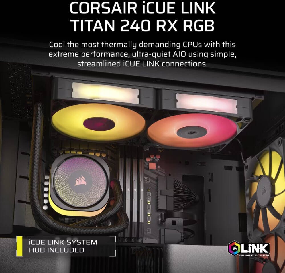 Corsair iCUE LINK TITAN 240 RX RGB AIO Liquid CPU Cooler, Compatible With Intel Socket LGA 1851, 1700, AMD AM5, AM4, Addressable RGB, Extreme Cooling Performance, Black