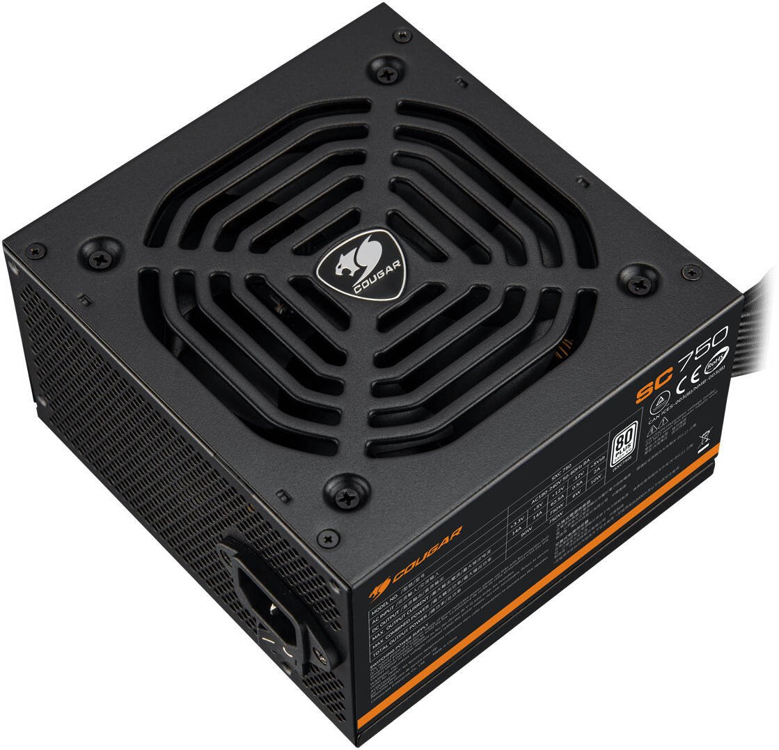Cougar SC 650 Power Supply, 650W Power, 80 PLUS Standard Efficiency, DC-DC Technology, High Amperage Single +12v Rail, Silent Hydraulic Bearing Fan, Full Protections, Black
