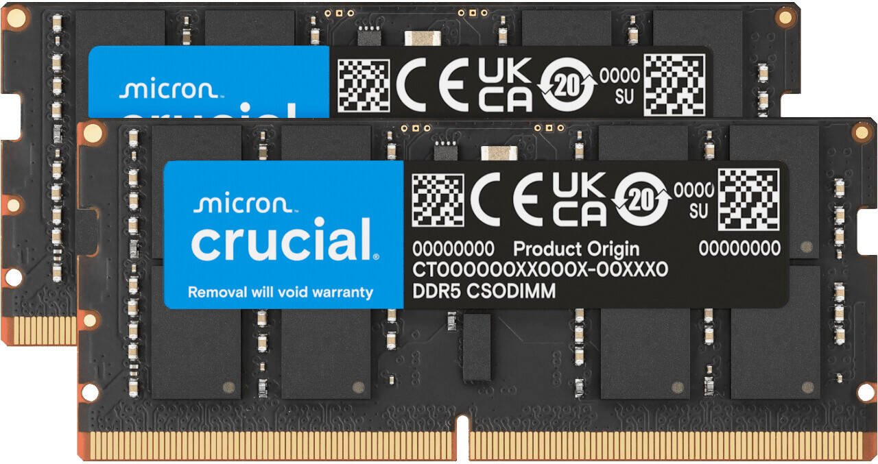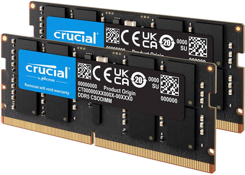 Crucial DDR5 CSODIMM Laptop Memory, 64GB (2x 32 GB) Capacity, 6400 MHz Memory Speed, CL52 CAS Latency, 262-Pin SO-DIMM, Unbuffered DIMM Type, Black