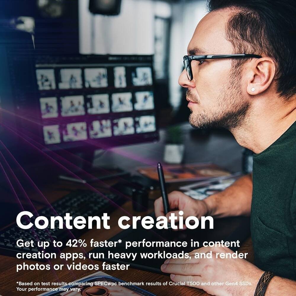 Fuel your system performance with the Crucial T500 Gen4 NVMe SSD. Load expansive game levels and massive videos along with other large files and applications in a flash with the Crucial 1TB T500 PCIe 4.0 x4 M.2 Internal SSD. Offering reliable, fast speeds, this M.2 2280 SSD delivers up to 7300 MB/s sequential read and 6800 MB/s write speeds when installed into an available PCIe 4.0 x4 slot.