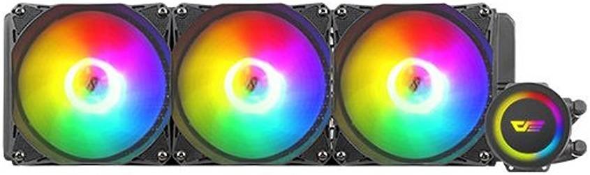 Darkflash AURA DA360 Liquid CPU Cooler, 120mm PWD Fans, 900~1800RPM Fan Speed, 2500 RPM Pump Speed, HQ Water Pump, Wide Copper Bottom, Hydraulic Bearing, Black