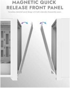 - Magnetic front panel designed easy swap between glass and mesh