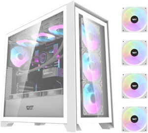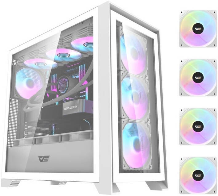 DarkFlash DRX90 Glass ATX Computer Case, 360mm Radiator Support, Up to 10x 120mm Fan Support, Cable Grommet, Magnetic Quick Release Front Panel, Tempered Glass Material, White