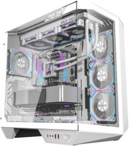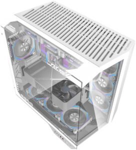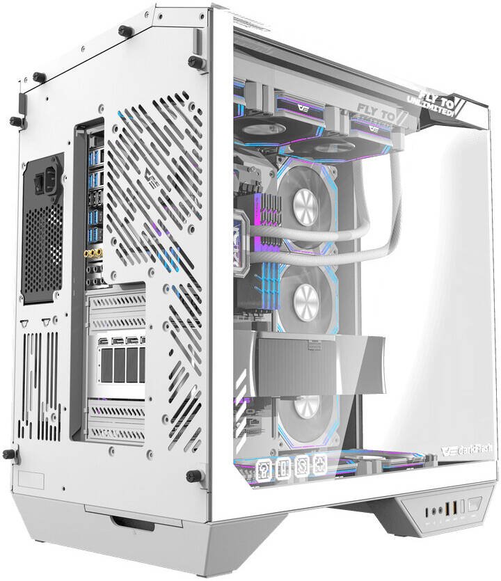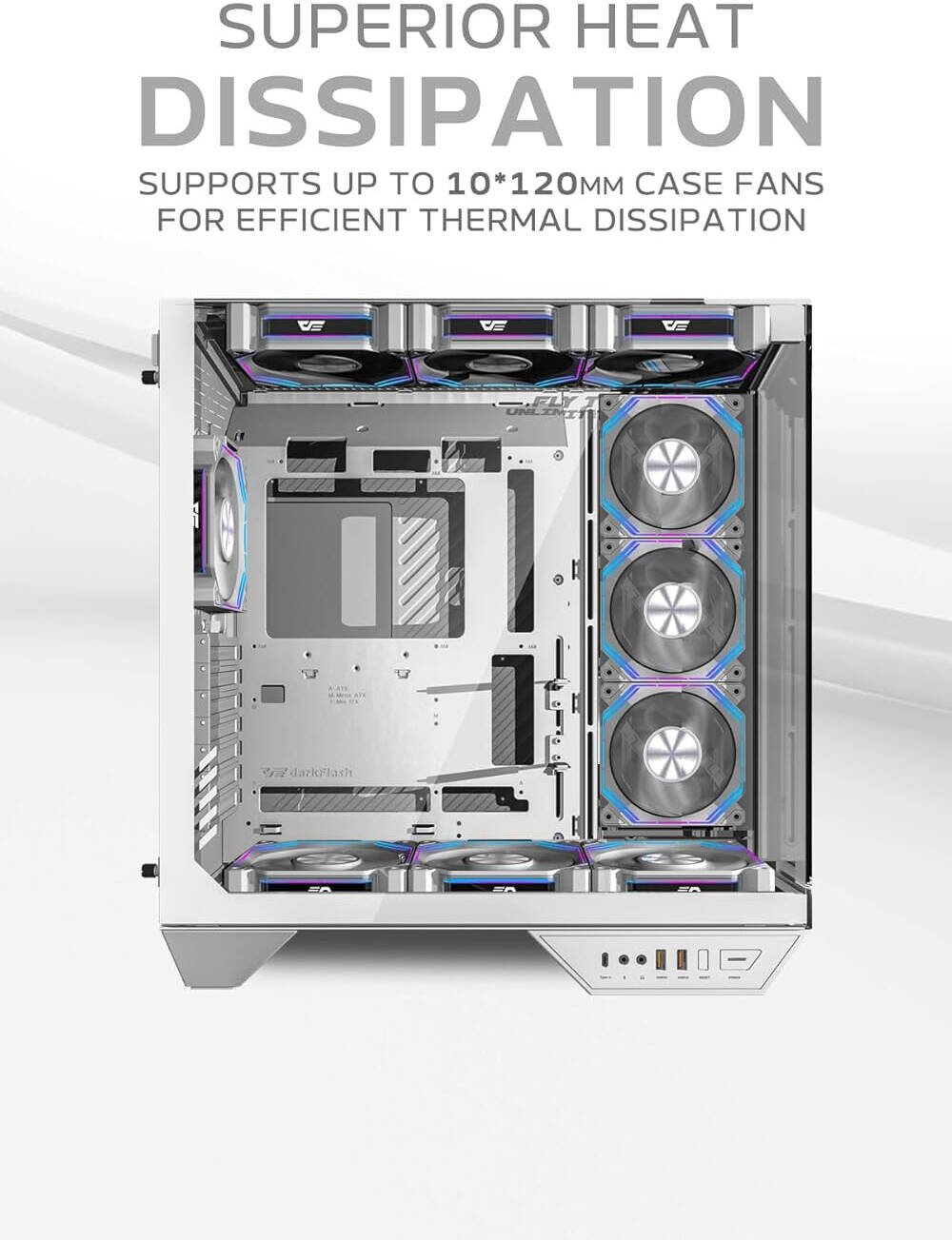 DarkFlash DY470 ATX Computer Case, 4x Pre-Installed aRGB Fans, 360mm Radiators, Up to 10x 120mm Fan Support, Cable Management Panel, 330° Immersive Panoramic View, 3 Glass Panels, Ice White