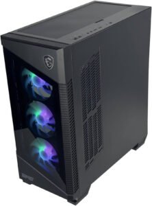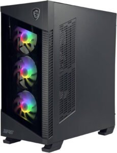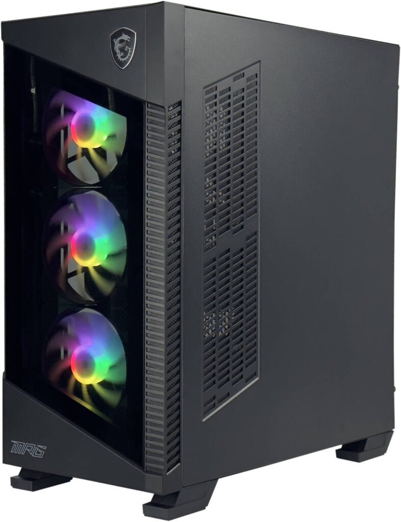 MSI MPG Velox 100R Mid-Tower Gaming PC Case, Tempered Glass Side Panel, 4 x 120mm ARGB Fans, Liquid Cooling Support up to 360mm Radiator, Mesh Panel, Black