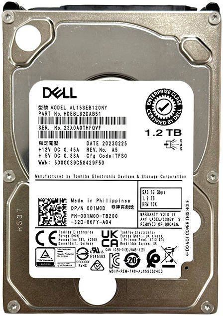 Dell HDEBL82DAB51 512n 1.2TB SAS12Gbps 2.5″ Enterprise Internal HDD, 234 Mbps Data Transfer Speed, 10000 RPM Speed, 128 MB Cache Memory, 2,000,000 Hours MTBF