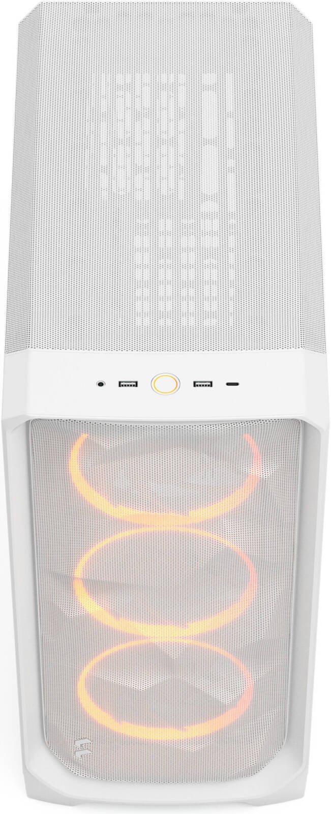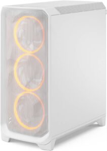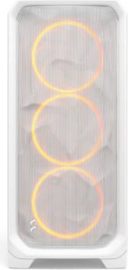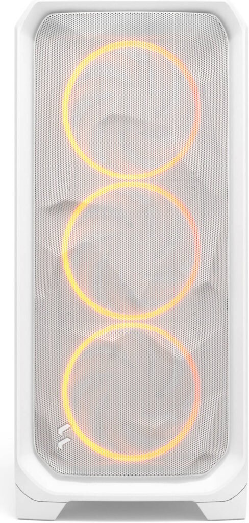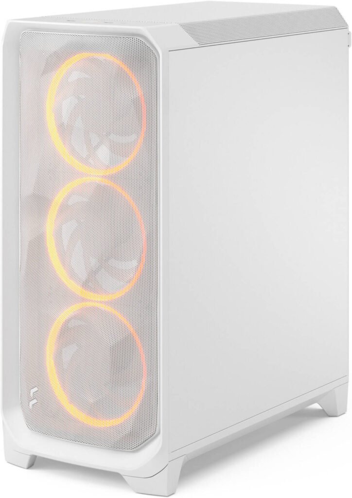Fractal Design Meshify 3 RGB ATX Mid Tower Computer Case, 3x Momentum 14 Fans, Up to 360mm Radiator & 6x Fan Support, Cable Organizers, Clear Tint Glass Panel, White