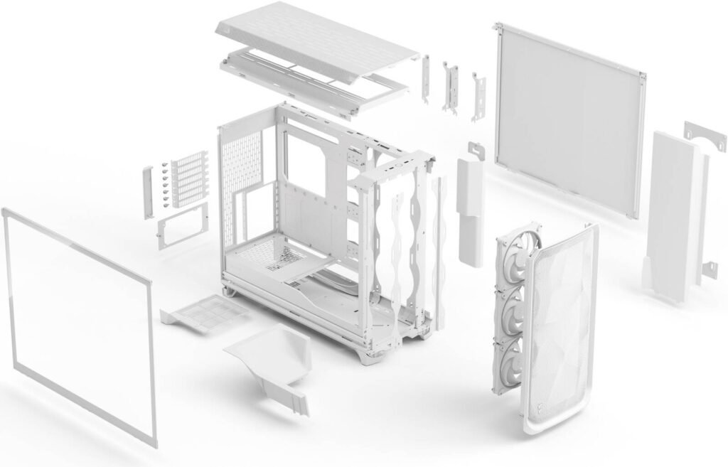 Fractal Design Meshify 3 XL Full Tower Computer Case, 3x Momentum 14 Fans, Up to 420mm Radiator & 10x Fan Support, Cable Organizers, Tempered Glass Panel, White TG Clear Tint
