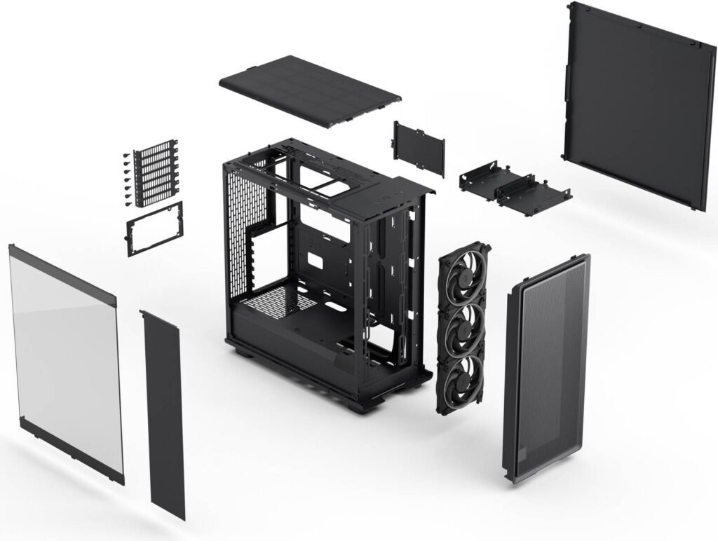 Fractal Epoch Mid-Tower Computer Case, 3x 120 mm Momentum Fans, Up to 360mm Radiator & 6x Fan Support, Steel & Tempered Glass Side Panels, Cable Routing, Black TG RGB Light