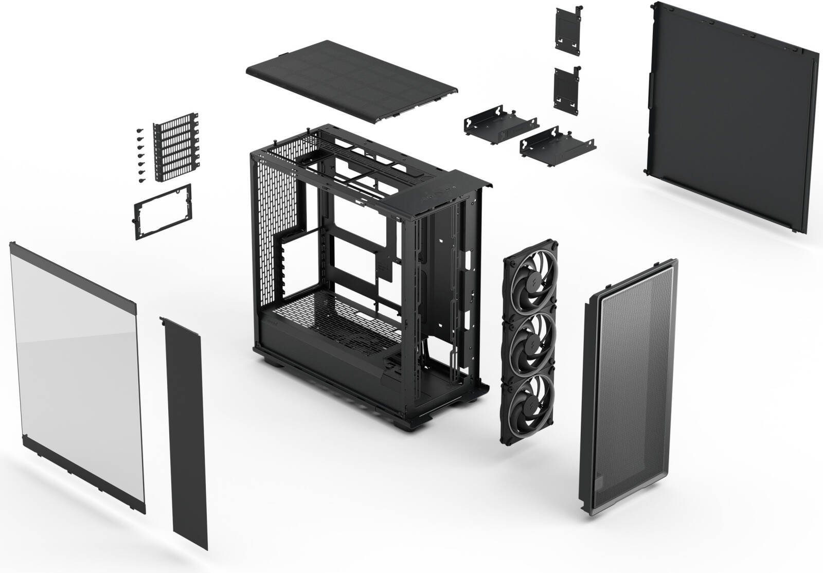 | Captive Thumbscrews | HDD brackets, SSD brackets, side panels, PSU bracket |