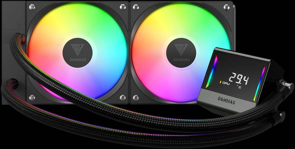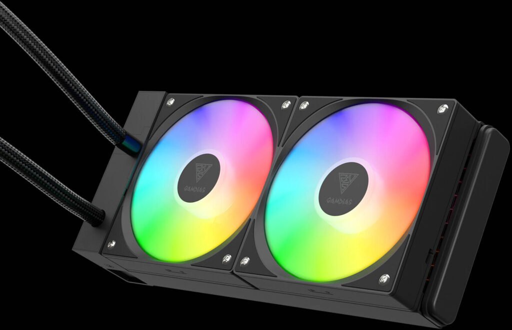 GAMDIAS Chione E4-240 Liquid Cooler, 800 – 1800 RPM Speed, 73.36 CFM Air Flow, 2.12 mmH2O Air Pressure, PWM & 5V sync Connector, Black
