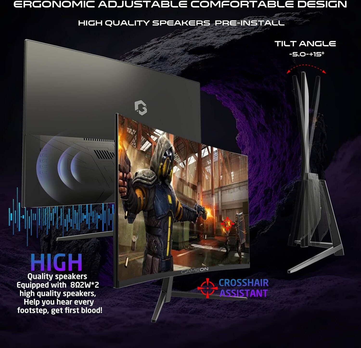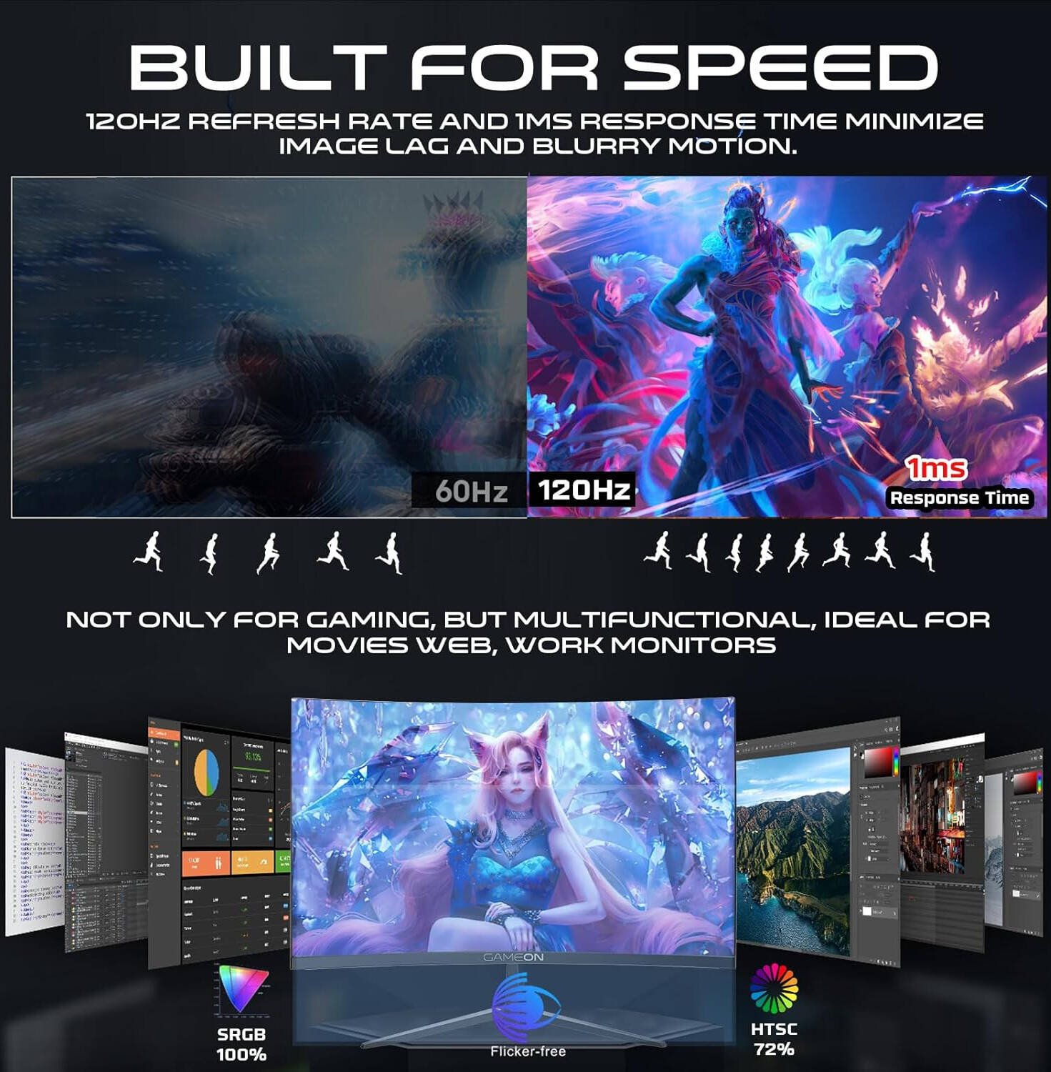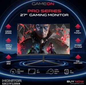 GAMEON GOC27F120VA Pro Series Curved Gaming Monitor, 27″ VA Display, FHD Resolution, 120Hz Refresh Rate, 1ms Response Rate, AMD FreeSync Technology, HDMI 2.1, Black
