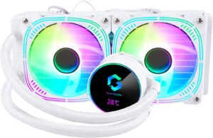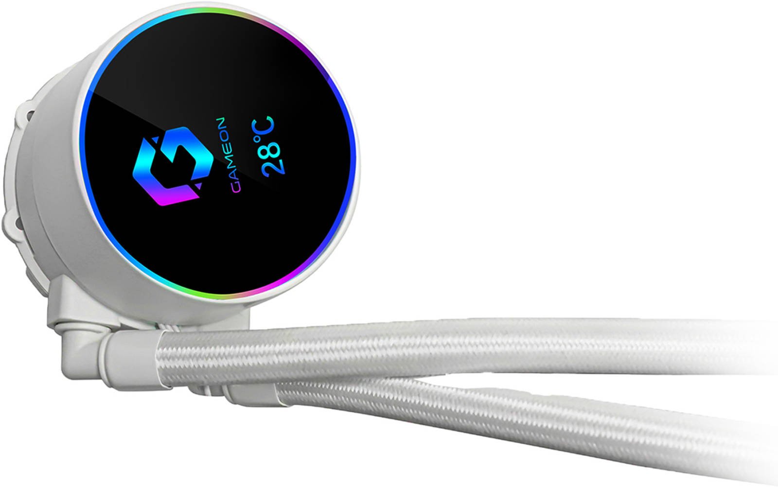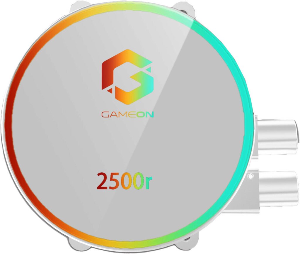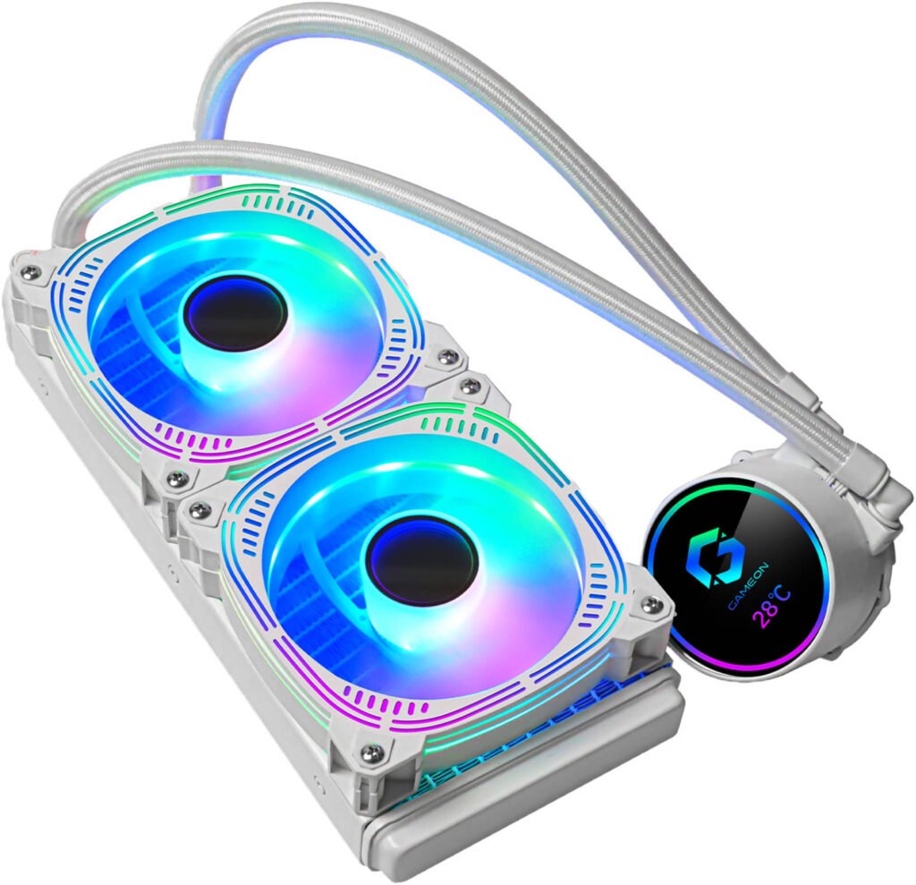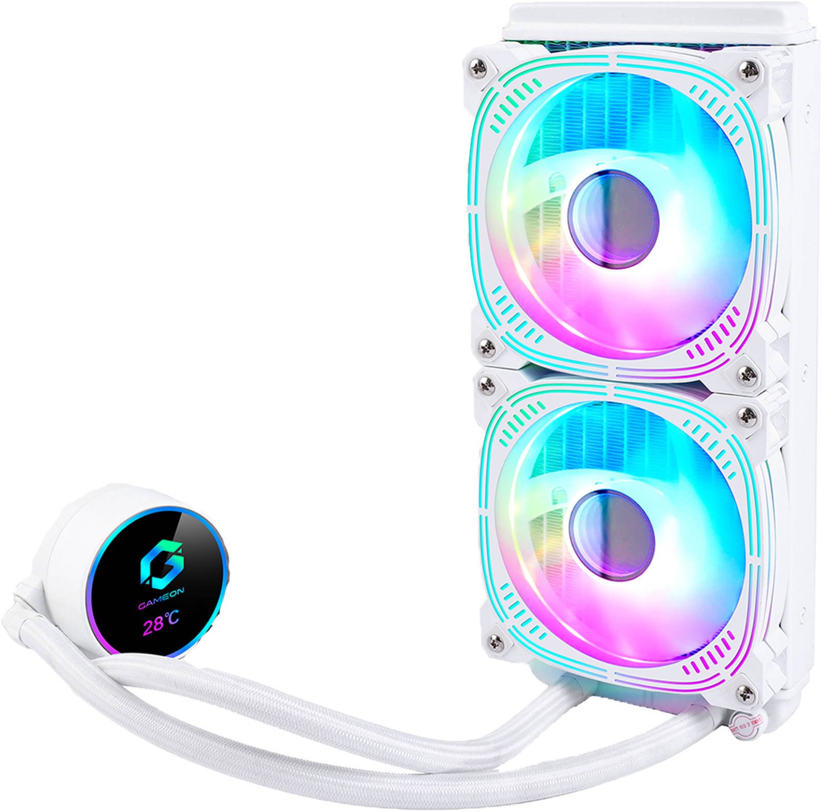 GameOn Kraken A380 240mm Liquid CPU Cooler, 2x 120mm RGB Fans, 600 – 1800 RPM Fan Speed, Rifle Bearing, Temperature Display, Aluminum Material, White