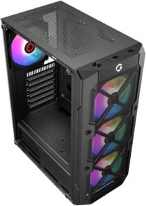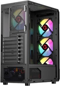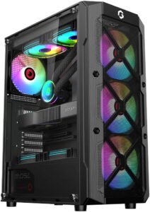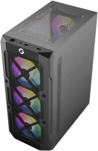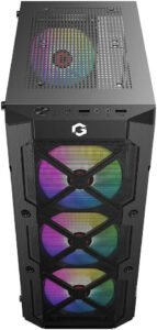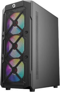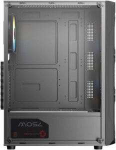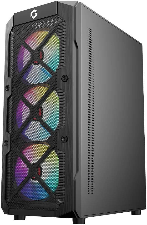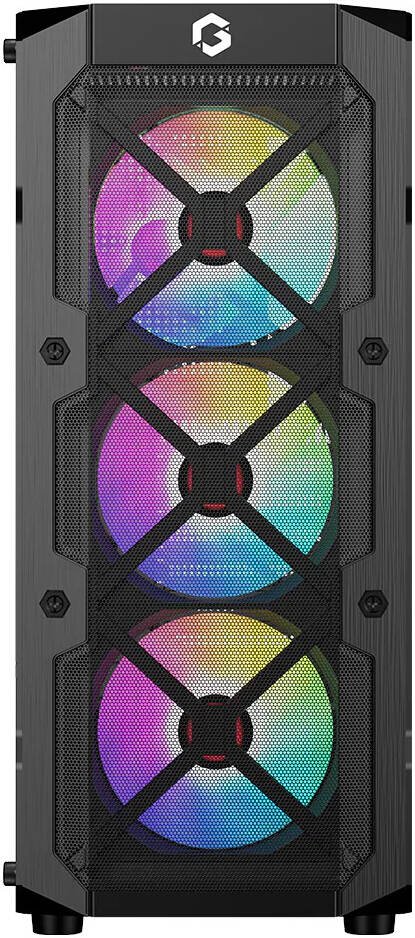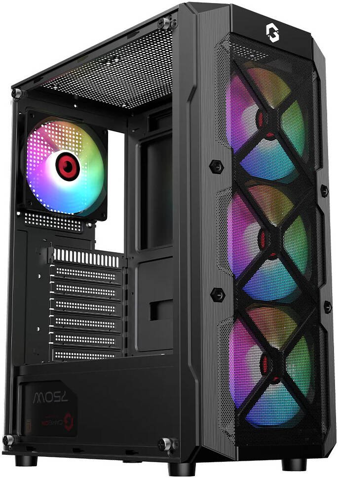 GAMEON TRIDENT III-M POWERFORGE Series Mid Tower Gaming Case, 4x 120mm LED Luminous Pre-Installed Fans, Pre-Installed 750W Power Supply, 240mm Radiator Support, Black