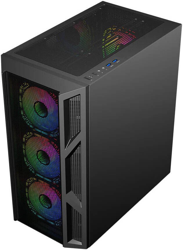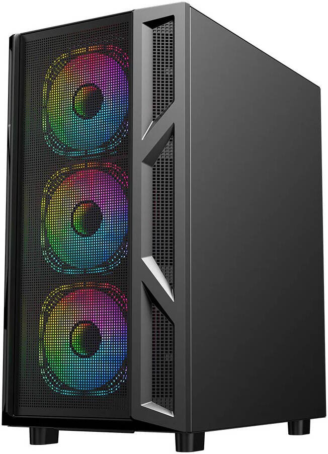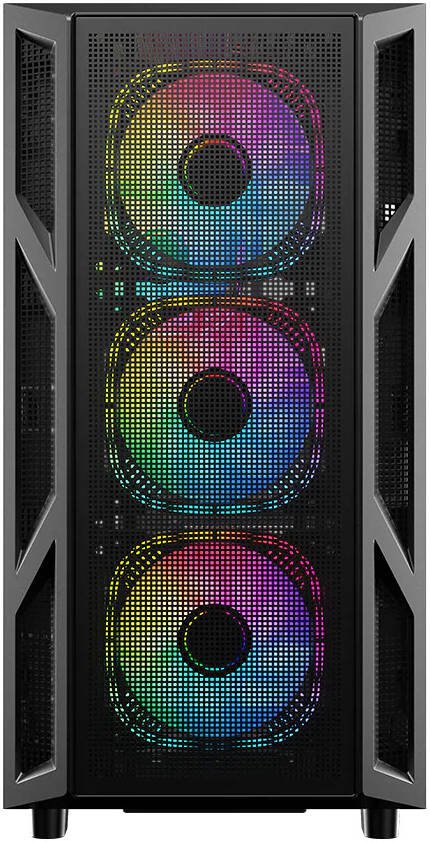 GAMEON Trident IV-M POWERFORGE Series Mid Tower Gaming Case, 4x 120mm ARGB + PWM Pre-Installed Fans, Pre-installed 750W PSU, 280mm Radiator Support, Tempered Glass Side Panel, Black