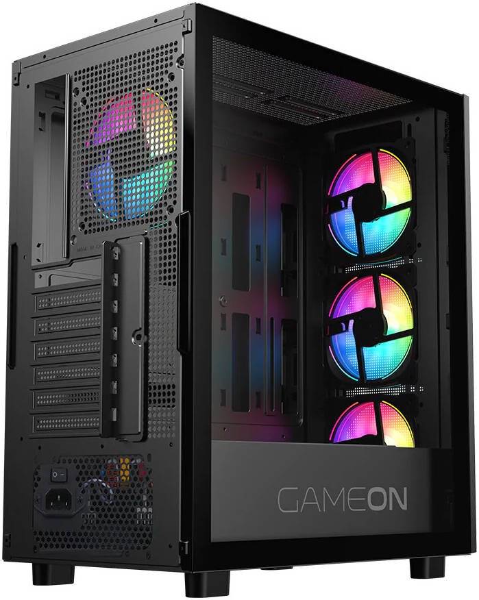 Be the first to review “GAMEON Trident IV-M POWERFORGE Series Mid Tower Gaming Case, 4x 120mm ARGB + PWM Pre-Installed Fans, Pre-installed 750W PSU, 280mm Radiator Support, Tempered Glass Side Panel, Black”