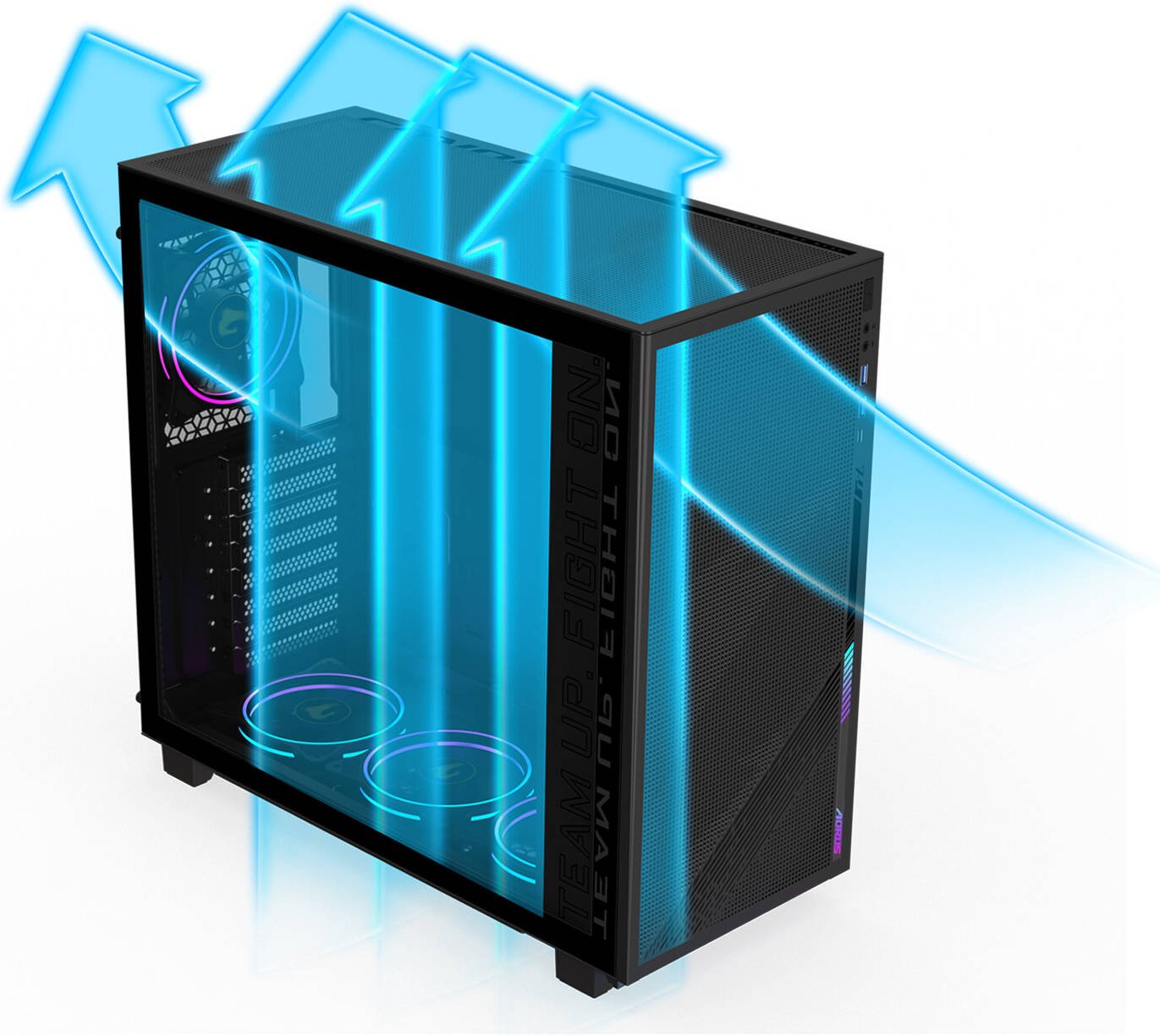 - Airflow Design: Optimized vertical airflow with bottom, rear, and top fan/radiator support.