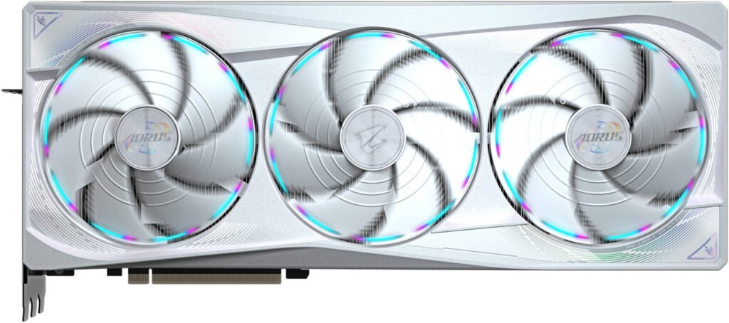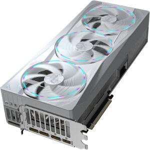 GIGABYTE AORUS GeForce RTX 5090 Master Ice Graphics Card, 32GB GDDR7 512-Bit Memory, 2655 MHz Boost Clock, 21760 CUDA Cores. 28 Gbps Memory Speed, PCI Express 5.0, White
