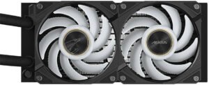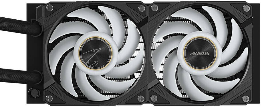 GIGABYTE AORUS WATERFORCE X II 240 Liquid CPU Cooler, 240mm Radiator, 2x 120mm ARGB Fans, 2400 RPM Fan Speed, 72 CFM Fan Airflow, Rubber Tube with Nylon Sleeve, Black
