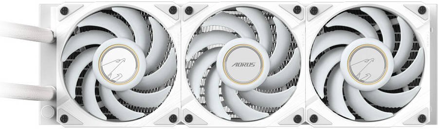 - The water block and fan feature gradient lighting, and the ARGB fan lighting can be synchronized with other AORUS devices through GCC (GIGABYTE Control Center).