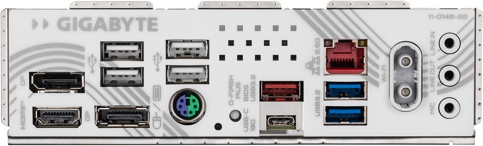 | Back Panel | 1× HDMI, 2× DisplayPort 1× Q-Flash Plus button 1× PS/2 keyboard/mouse 1× USB 3.2 Gen2 Type-A (red), 1× USB-C (3.2 Gen2) 2× USB 3.2 Gen1, 4× USB 2.0 1× RJ-45, 2× Wi-Fi antenna (2T2R) 3× audio jacks |