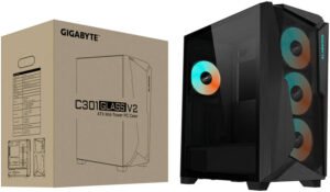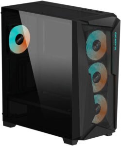 Gigabyte C301 Glass V2 Mid Tower Case, 4x Pre-Installed ARGB Fans, Up to 360mm Radiator Support, RGB Lighting, Dust Filter, Full-Size Tempered Glass Side Panel, Black