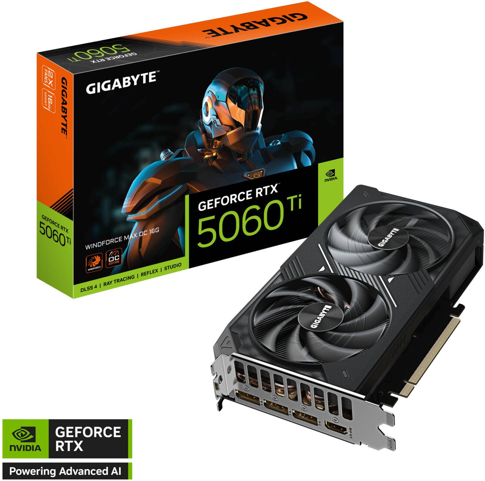 GIGABYTE GeForce RTX 5060 Ti WINDFORCE MAX OC 16GB Graphics Card, GDDR7 128-Bit Memory, 2587 MHz Core Clock, 28 Gbps Memory Clock, 4608 CUDA Cores, PCI Express 5.0