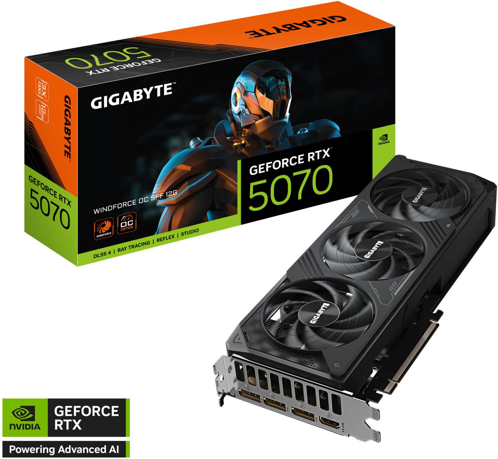 GIGABYTE GeForce RTX 5070 WINDFORCE OC SFF Graphics Card, 12GB GDDR7 192-Bit Memory, 2542 MHz Core Clock, 6144 CUDA Cores, PCI Express 5.0